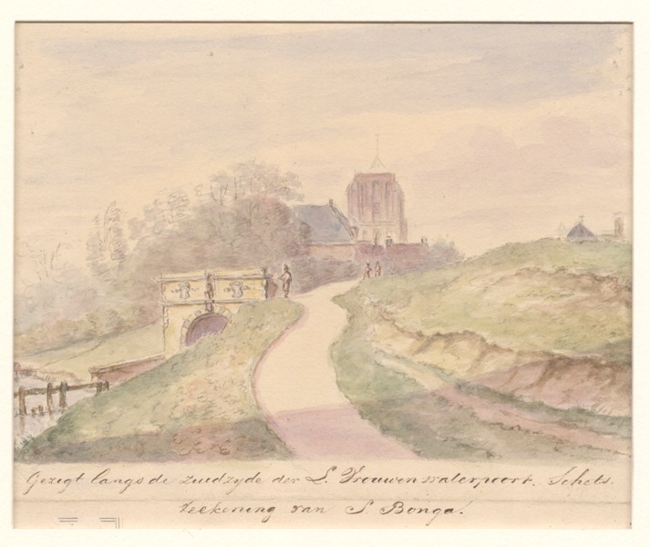 Gezicht langs de zuidzijde van de L. Vrouwenwaterpoort te Leeuwarden