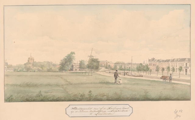 Gezicht op de stad Leeuwarden vanaf de Harlingervaart