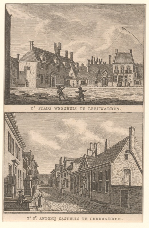 Gezicht op het Nieuwe Stadsweeshuis en St. Anthoniegasthuis te Leeuwarden