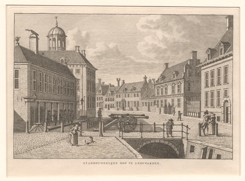 Gezicht op het Stadhuis en het Stadhouderlijk Hof te Leeuwarden