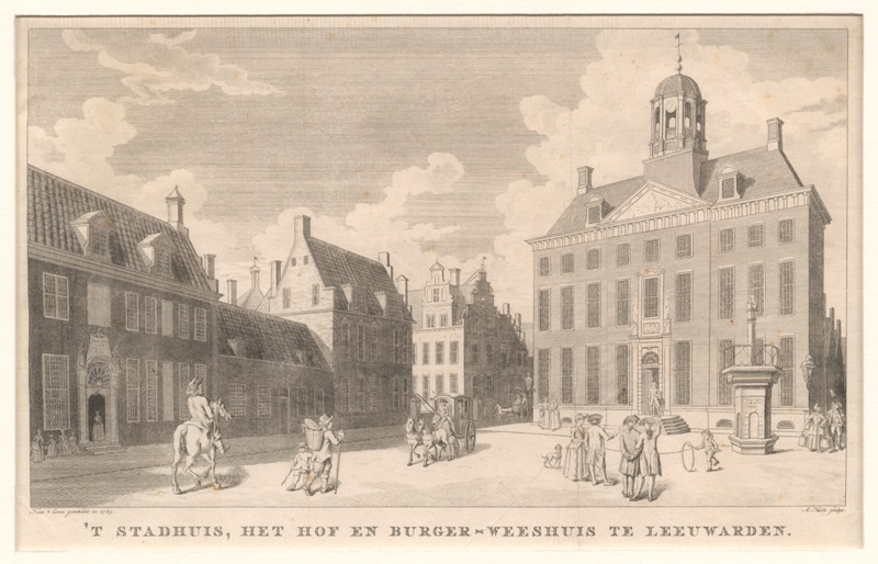 Gezicht op het stadhuis en het stadhouderlijk hof te Leeuwarden