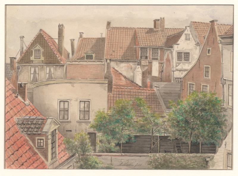Gezicht op binnenterreinen en achtergevels te Leeuwarden