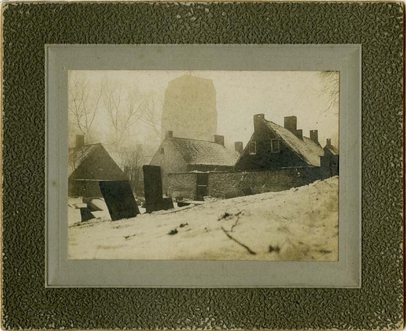 Noorderplantage op de voormalige Israelische Begraafplaats met op de achtergrond de Oldehove te Leeuwarden