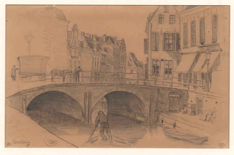 Gezicht van Over de Kelders op de Brolbrug met daarachter het Naauw
