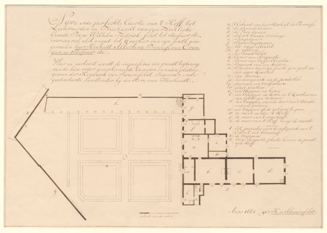 Plattegrond van het Stadhouderlijke Hof aan het Hofplein te Leeuwarden