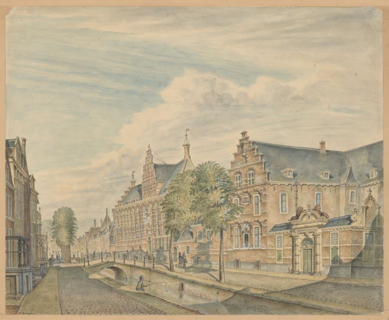 Gezicht op de Kanselarij en het Landshuis aan de Turfmarkt te Leeuwarden