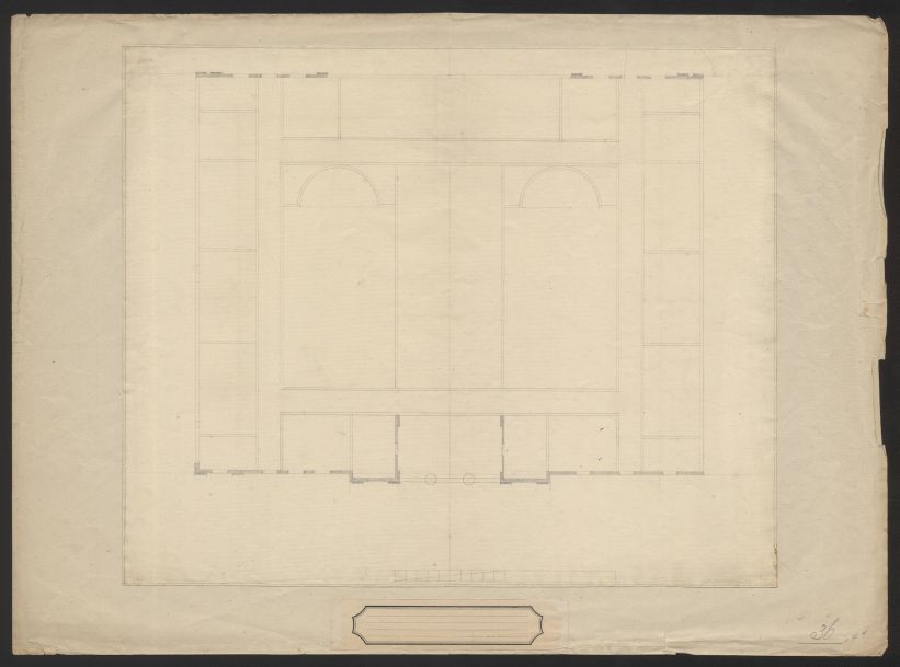 Ontwerpen voor een lokaal van het Provinciale Gerechtshof van Friesland en de Arrondissements- en Kantonsrechtbanken te Leeuwarden. Tevens een plattegrond van de bovenverdieping.
