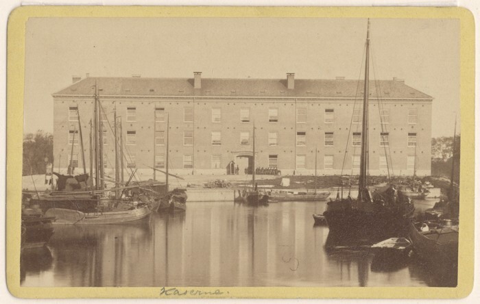 Zwart-wit foto van de herbouwde kazerne te Leeuwarden, carte de visite formaat