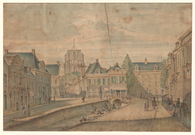 Gezicht vanuit het Schavernek op de Oldehove en het Burmaniahuis