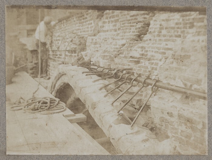 Detail van de restauratie van de Oldehove te Leeuwarden rond 1925