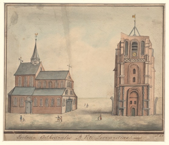 Gezicht op de Oldehove en de St. Vituskerk te Leeuwarden