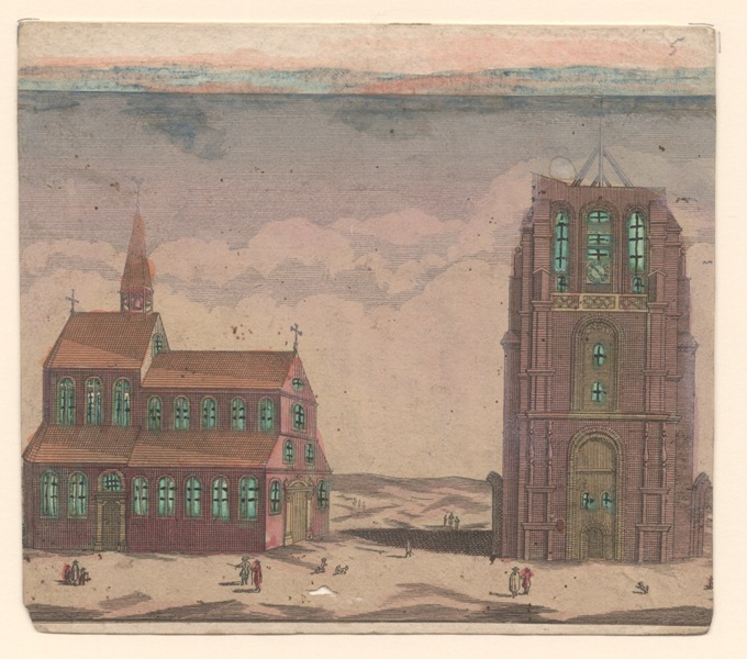 Gezicht op de St. Vituskerk en de Oldehove te Leeuwarden