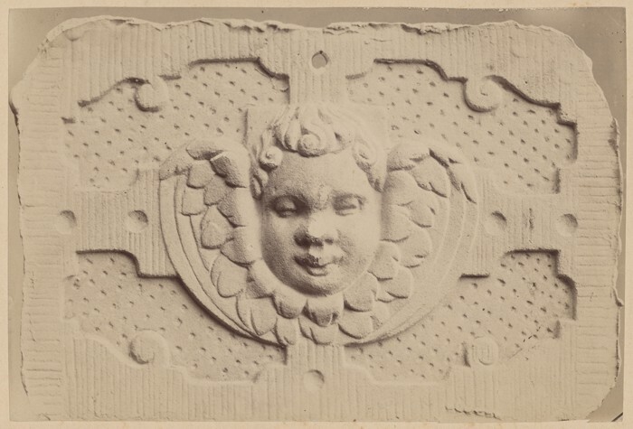 Detail van een gevel- of sluitsteen met kinderkopje of engelenkopje van de Waag te Leeuwarden