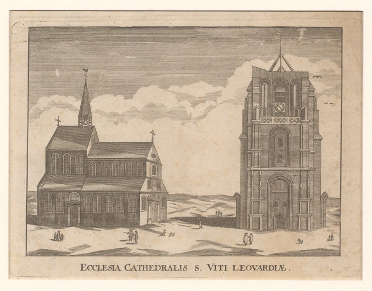 Gezicht op de St.Vituskerk en de Oldehove te Leeuwarden