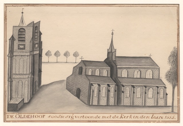 Gezicht op de Oldehove en de St. Vituskerk te Leeuwarden