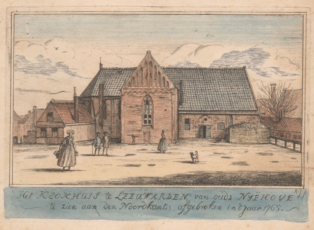 Gezicht op het Klokhuis van ouds Nijehove te Leeuwarden