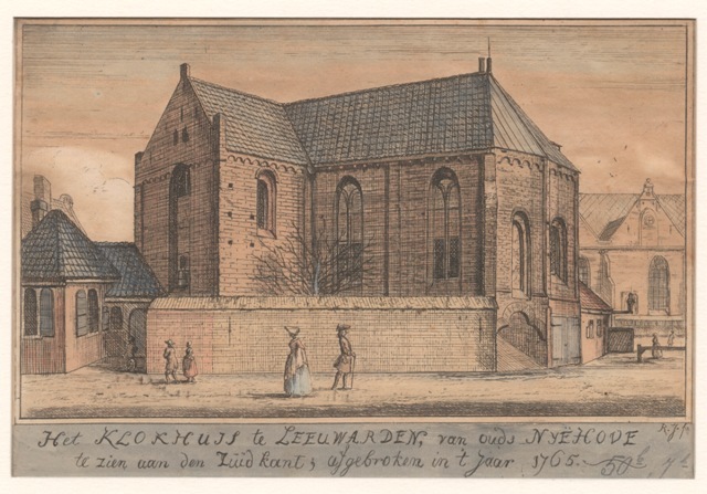 Gezicht op het Klokhuis van ouds Nijehove te Leeuwarden