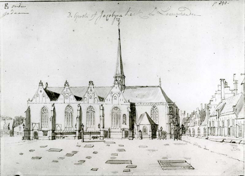 Gezicht op de Grote-of Jacobijner Kerk te Leeuwarden