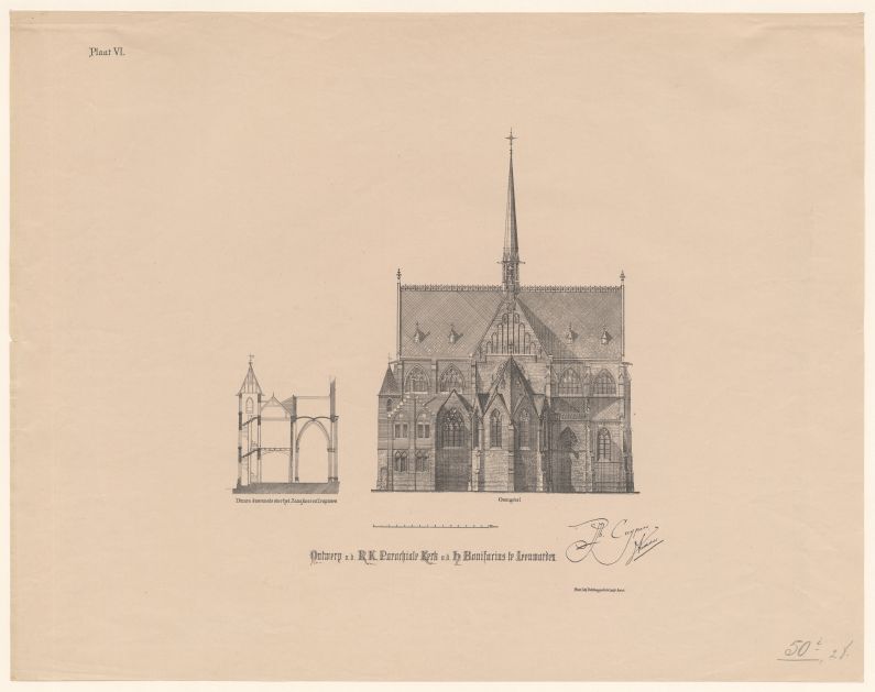 Ontwerp van de R.K. parochiekerk van de H. Bonifatius te Leeuwarden
