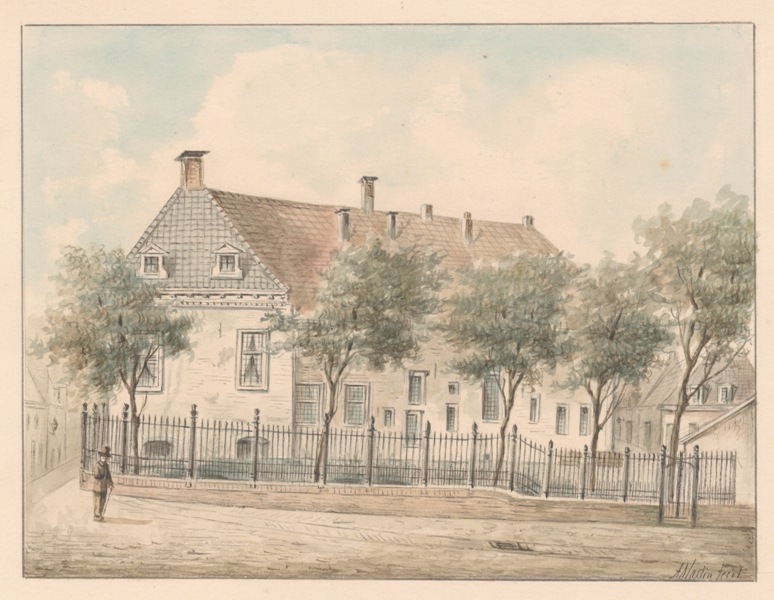 Gezicht op de westzijde van het St. Anthonie Gasthuis op de hoek van de St. Antoniestraat