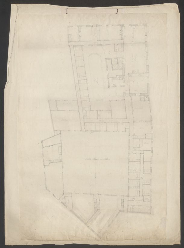 Plattegrond van de benedenverdieping van het Diakonie-armenhuis van de Hervormde Gemeente te Leeuwarden