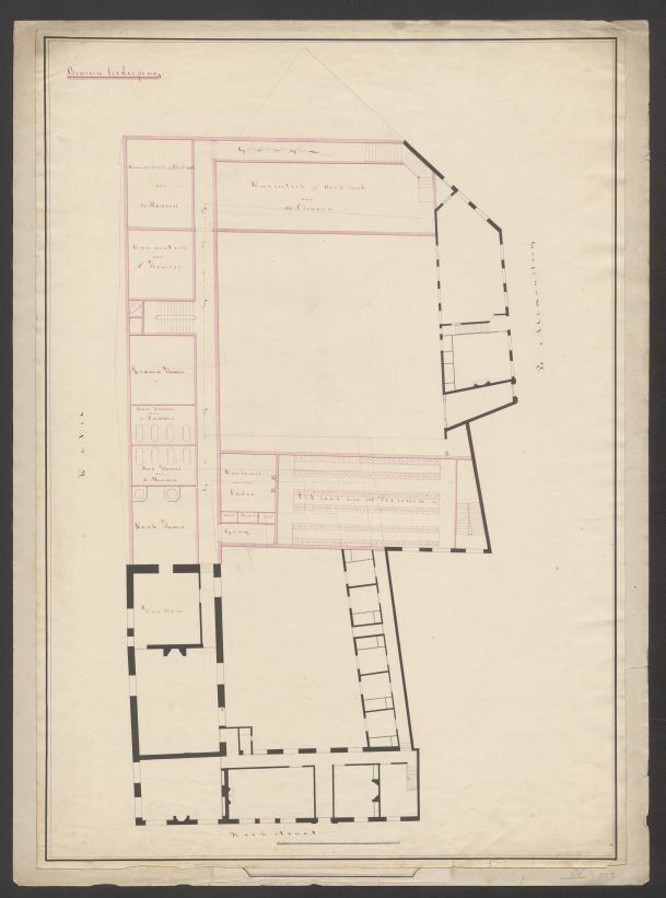 Plattegrond van de benedenverdieping van het Diakonie-armenhuis van de Hervormde Gemeente te Leeuwarden