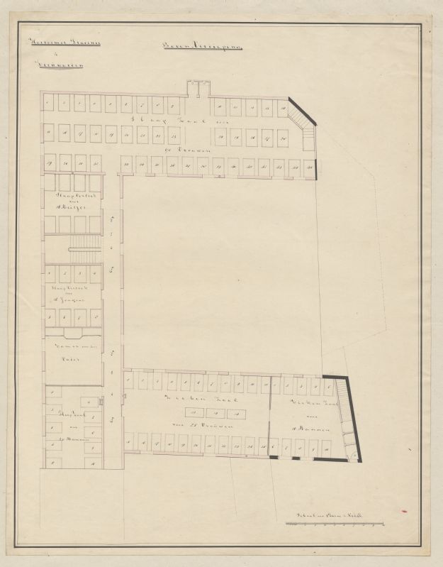 Plattegrond van de bovenverdieping van het Diakonie-armenhuis van de Hervormde Gemeente te Leeuwarden