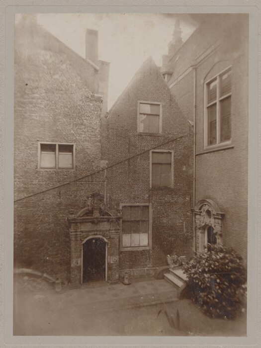 Binnenplaats van het Fries Museum te Leeuwarden voor de afbraak van de huisjes aan de Koningsstraat