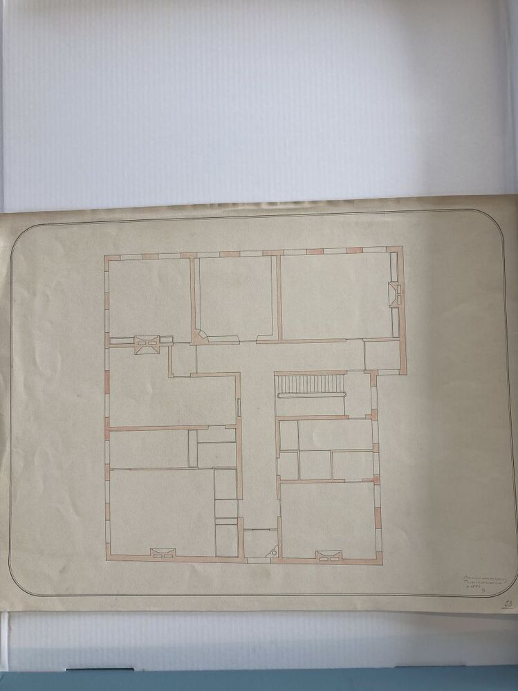Plattegrond van de bovenverdieping der huizige staande op de hoek van de Koningstraat en Turfmarkt te Leeuwarden