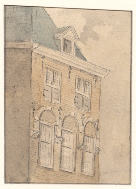 Gezicht op het bovengedeelte van een antieke gevel van een huis te Leeuwarden