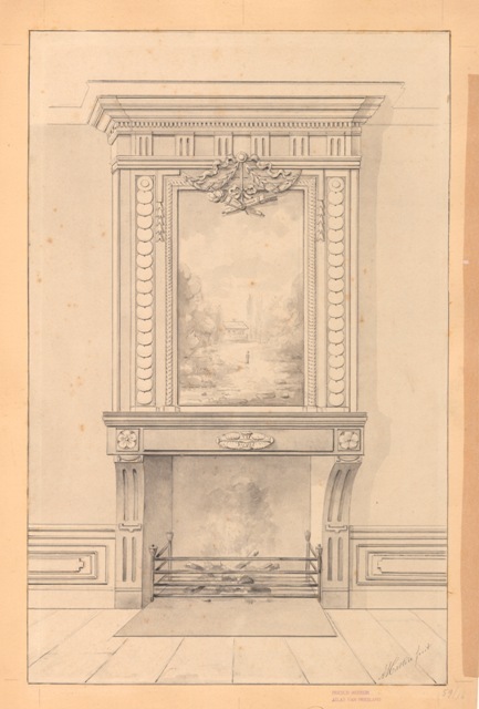 Schoorsteenmantel met afgebroken snijwerk aan het Heerenwaltje no. 4 te Leeuwarden.
