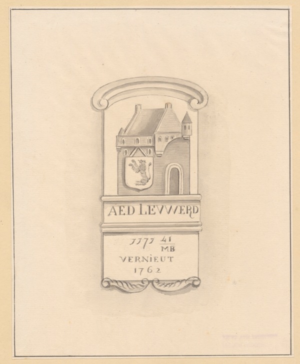 Gevelsteen uit de Grote Kerkstraat no. 43 met het wapen van de stad Leeuwarden