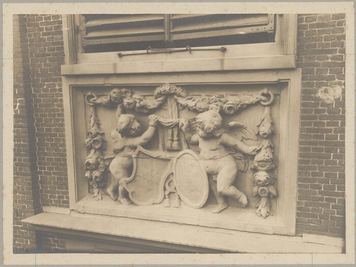 Gevelsteen van een huis met wapenborden aan de Druifstreek te Leeuwarden