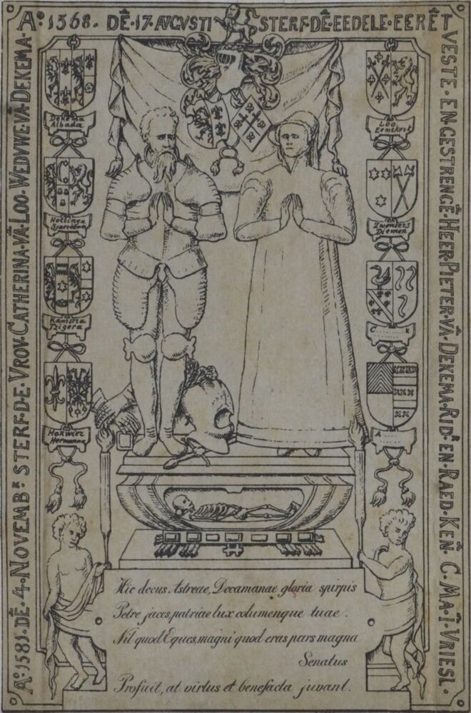 Grafzerk van Pieter Dekema en zijn vrouw Catherina van Loo in de zuidelijke muur van de Oldenhove te Leeuwarden