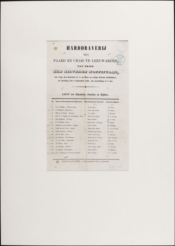 Harddraverij met paarden chais te Leeuwarden op saturdag den 6 september 1862 om een zilveren koffijvaas