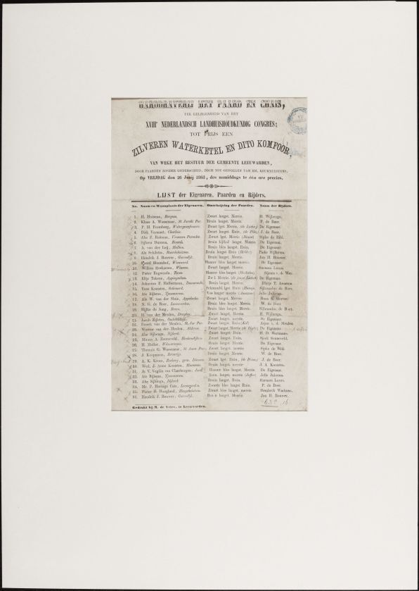 Harddraverij met paard en chais, ter gelegenheid van het XVIIIe Nederlandsch landhuishoudkundig congres. Tot prijs een zilveren waterketel en dito komfoor.