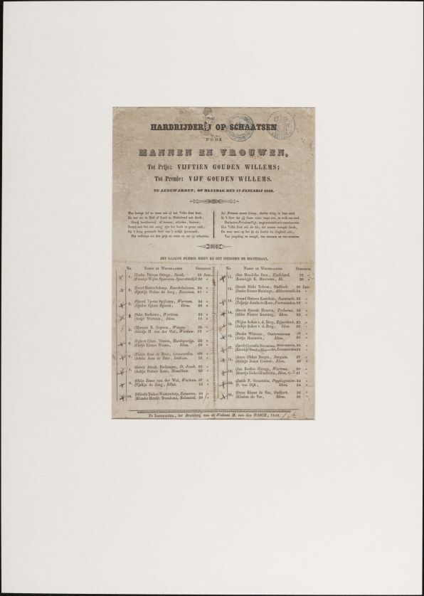 Hardrijderij op schaatsen door mannen en vrouwen [...] te Leeuwarden op maandag den 17 januarij 1848