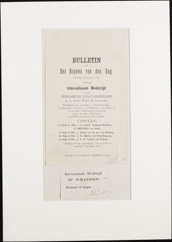 Internationale wedstrijd van het Nederlandsche schaatsenrijdersbond op de Groote Wielen bij Leeuwarden