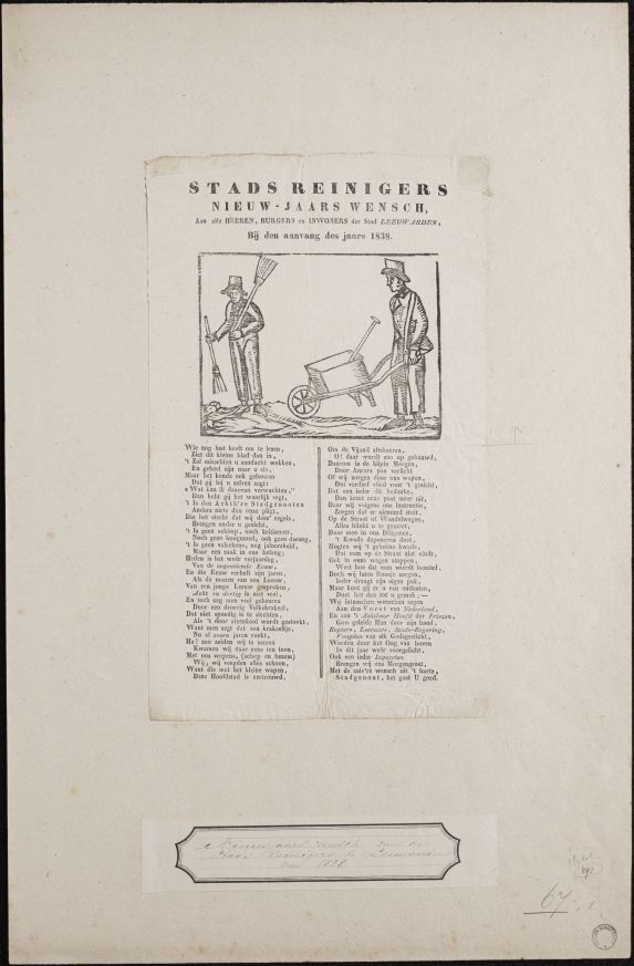 Nieuwjaarswens van de stadsreinigers van Leeuwarden voor het jaar 1838