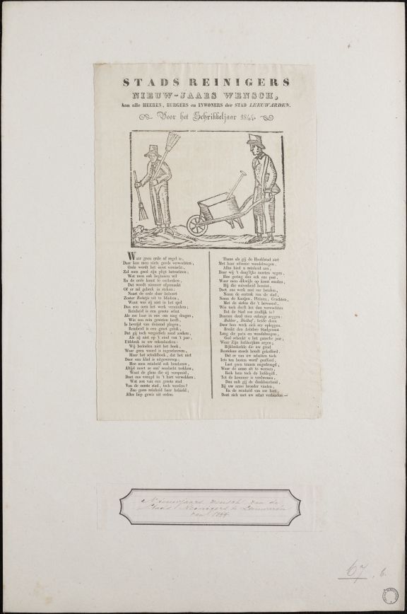 Nieuwjaarswens van de stadsreinigers van Leeuwarden voor het jaar 1844