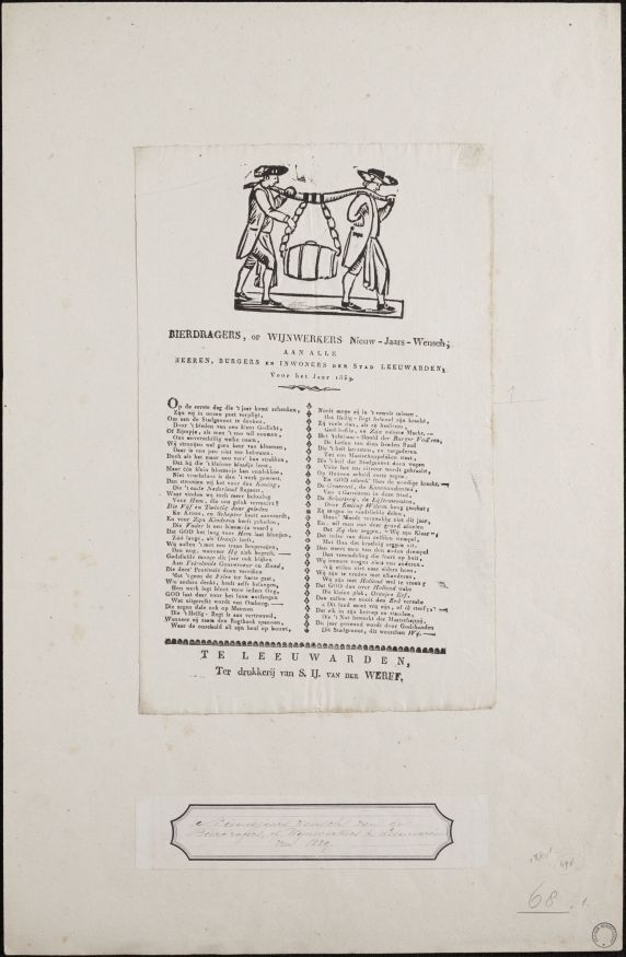Nieuwjaarswens van de bierdragers, of wijnwerkers van Leeuwarden voor het jaar 1839