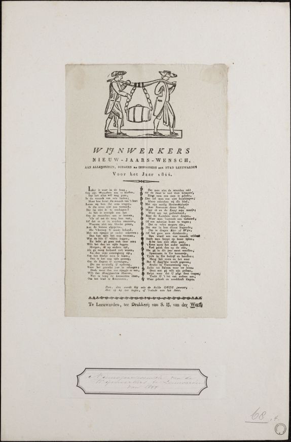 Nieuwjaarswens van de wijnwerkers van Leeuwarden voor het jaar 1844