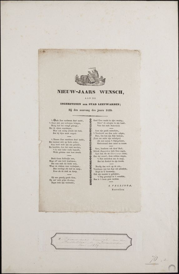 Nieuwjaarswens van de stadsbestellers van Leeuwarden, voor het jaar 1839