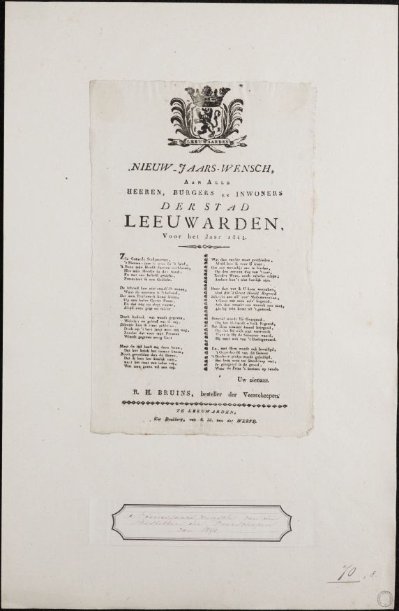 Nieuwjaarswens van de stadsbestellers van Leeuwarden, voor het jaar 1842