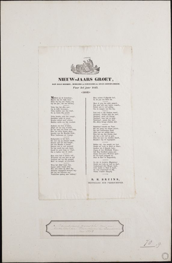 Nieuwjaarswens van de stadsbestellers van Leeuwarden, voor het jaar 1843
