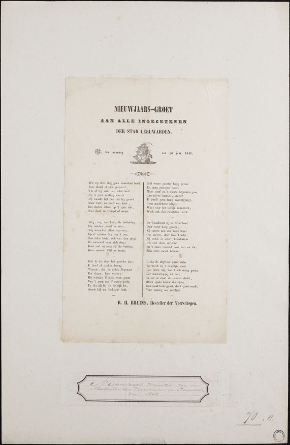 Nieuwjaarswens van de stadsbestellers van Leeuwarden, voor het jaar 1848