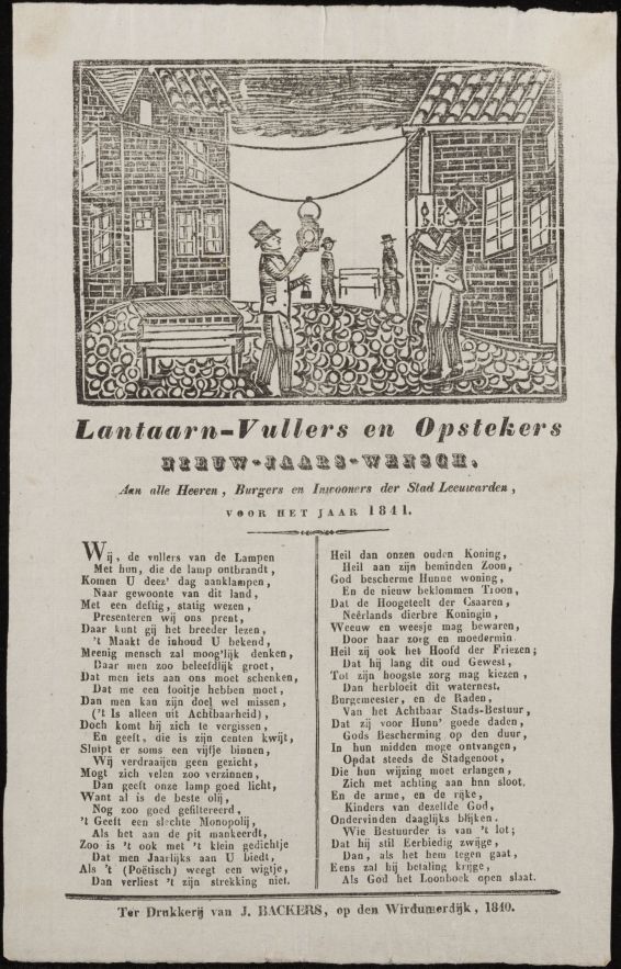 Nieuwjaarswens van de lantaarnvullers-en opstekers van Leeuwarden, voor het jaar 1841