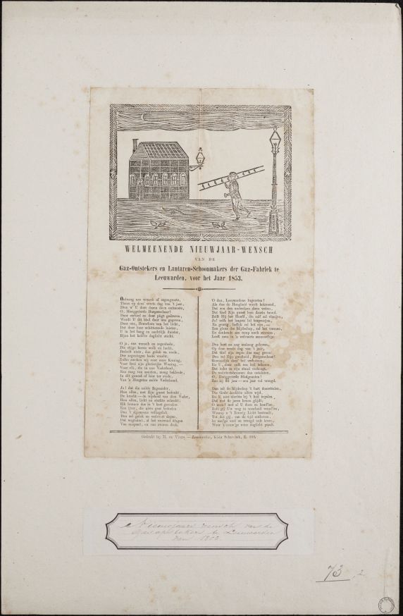 Nieuwjaarswens van de opstekers en schoonmakers van het gaslicht van Leeuwarden, voor het jaar 1853