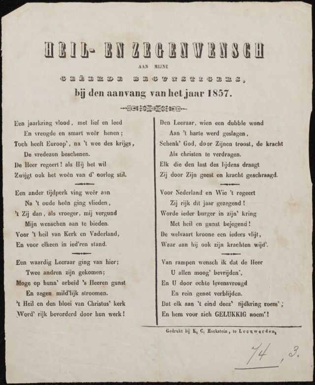 Heil- en zegenwensch aan mijne geeerde begunstigers bij den aanvang van het jaar 1857