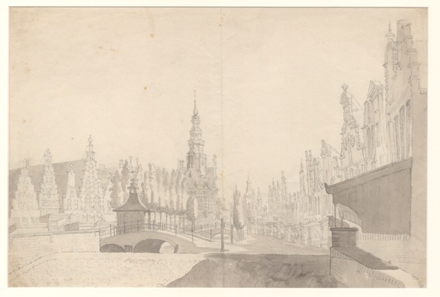 Gezicht op de markt en Vismarkt van de stad Bolsward
